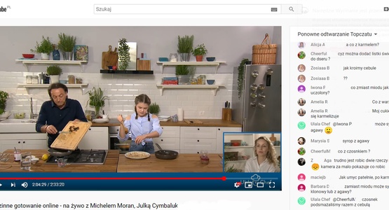 W pierwszej odsłonie przez wszystkie etapy przygotowywania dań prowadził Karol Okrasa, następnie podczas rodzinnego gotowania Michel Moran z Julką Cymbaluk, a w zeszłą niedzielę Mateusz Gessler wraz z Gają Suchocką. Po streamingu jeszcze przez jakiś czas dla uczestników dostępne było nagranie z wydarzenia, a więc na spokojnie mogli wrócić do każdego momentu, lub obejrzeć całość jeszcze raz. W podobny sposób wyglądało wspólne pieczenie, czyli wydarzenie z Jaśkiem Kuroniem, który wraz ze swoją żoną - Anetą przyrządzał na żywo z widzami słodkie wypieki.